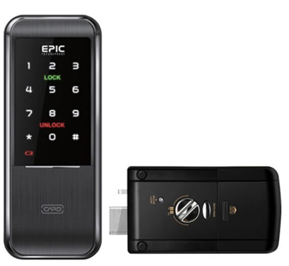 Epic Mortise Digital Door Lock 3way : Pin Number + Rfid Card + Mechanical Key; Up to 100 RFID cards can be registered; Guest Pin Number Registration (One-Time Pin Number); Auto, Manual Locking / Double Locking Mode; Random Number and Multi-touch Features; Administrator Setting Menu