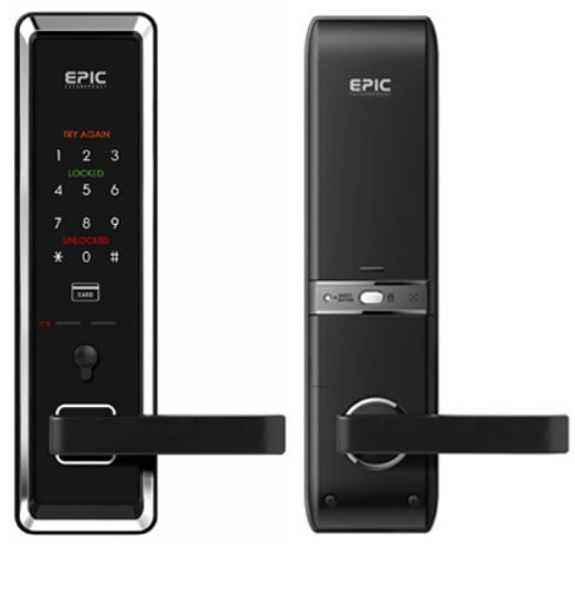 Epic Password, RFID Card and Mechanical Key Operated Digital Door Lock Elegant design Strong study body Internal Force Lock Anti-shock feature KC quality certified Smart Lighting function Smart Card Key type Easy open Random Number Feature Fire sensor & safety function Anti-panic Handle system Anti-crime alarm Comfortable features Up to 100 Cards