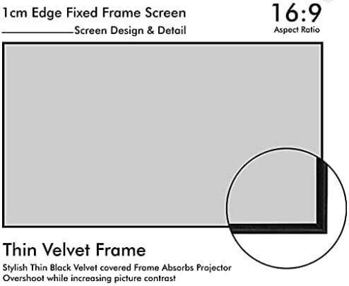 Eurros 110" Silver pro Micro Perforated 1cm Edge Frame Screen with Aspect Ratio : HDTV 16:9; Viewing Area : 54 X 96 (inch);Black Velvet & Slim Frame; Ultra high definition image & wide angle viewing angle.