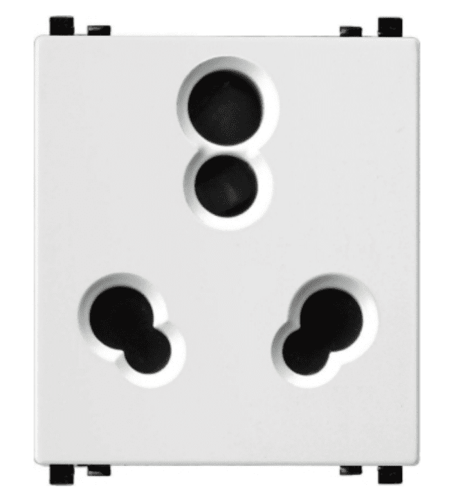 Range - ZENcelo,Product or component type Power -socket-outlet,Outlet poles configuration - 2P + E,Load type - Resistive,Colour tint - White,Cover frame colour - tint White,Cover plate colour - tint White, Device mounting Surface, Flush, Number of gangs - 1 gangMaterial - Brass contact,Polycarbonate base,Polycarbonate cover,Steel terminals,Connections - terminals Clamps terminal, Embedding depth 25.7 mm,Width 47.6 mm,Height 58 mm, Depth 31.7 mm