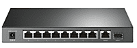 9 10/100/1000 Mbps RJ45 ports, 1 Gigabit SFP port, With 8 PoE+ ports, transfers data and power on one single cable, Works with IEEE 802.3af/at compliant PDs and expands office network, 802.1p/DSCP QoS enable, High PoE power budget with up to 30W for each PoE port and 63W for all PoE ports